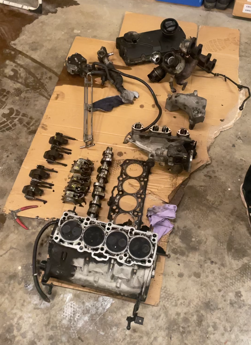 Over the course of a month, the engine was removed, stripped down, rebuilt, and placed back into the car. I also took this time to install a new performance clutch and flywheel, along with all the supporting modifications for the power goals. These modifications include a larger 59mm turbo, a front mount intercooler and piping, bigger injectors, upgraded valves and lifters, and a custom dyno tune.