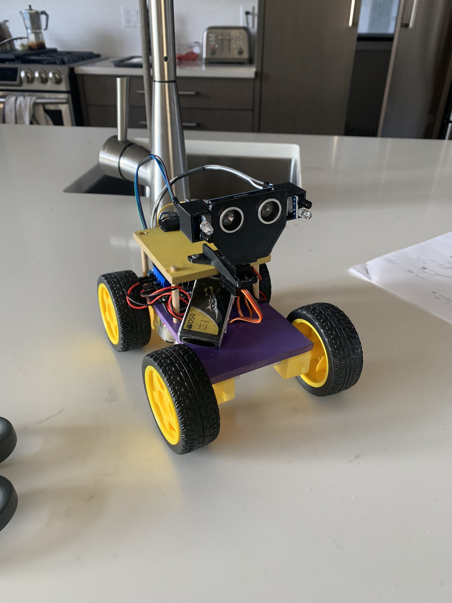 The project goal was to create a maze-solving robot which did not need any human input along the way. For the project, our group used an Arduino UNO, 4 electric motors, several IR and sonar sensors, a servo and a LiPo battery. For this project, I was in charge of building the robot, including creating the body and running the appropriate wires to their connections.