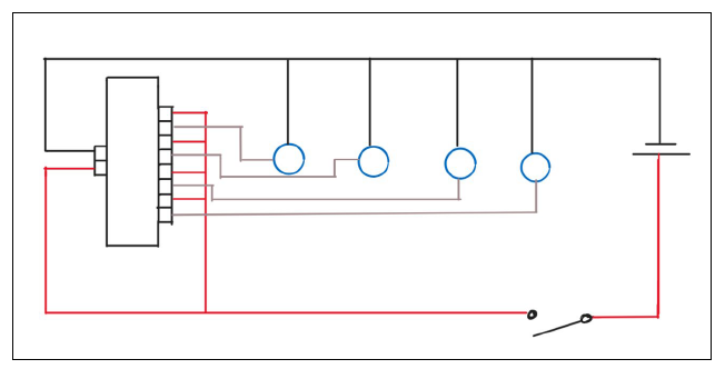 The wiring for the device included 4 LED lights with a shroud to increase visibility, a simple Bluetooth controller with 4 small relays programmed to respond to the corresponding buttons on the remote. The device was powered by a standard 18V power tool battery for ease of use. The device was utilized for both the 2024 and 2025 harvests.
