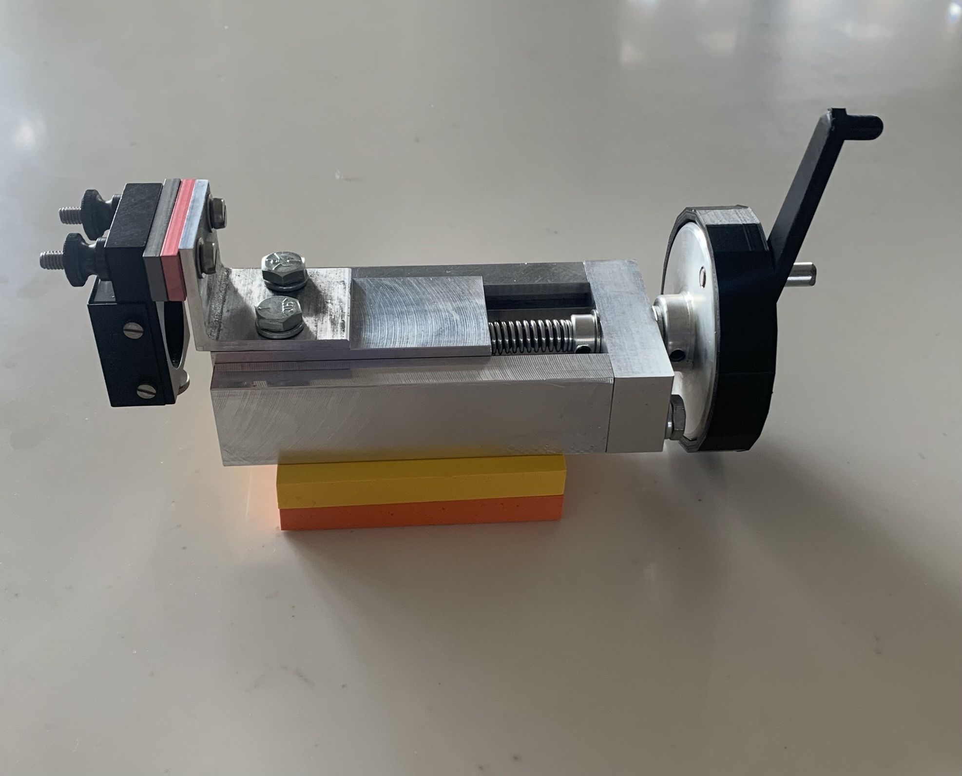 The device used a tight pitch threaded rod which was held in place by a spring, the project required 3-4cm of total movement while moving with a precision of 1um. Both these deliverables were complete.