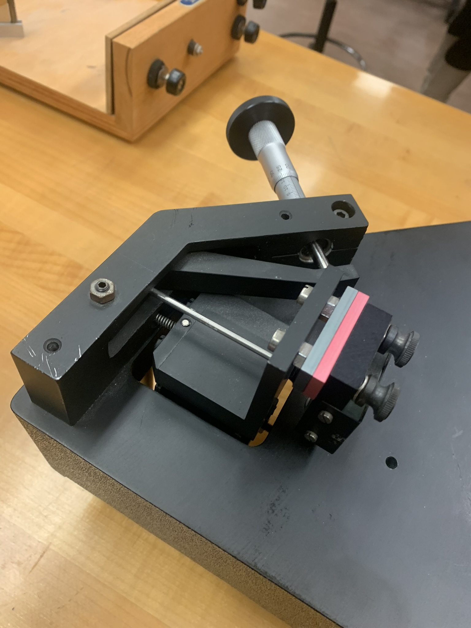 The device used a tight pitch threaded rod which was held in place by a spring, the project required 3-4cm of total movement while moving with a precision of 1um. Both these deliverables were complete.