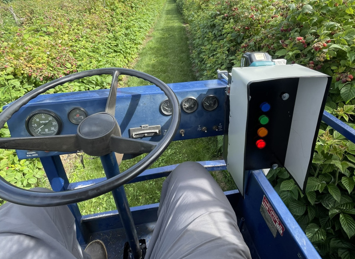 In my first Co-op term, I designed and built a solution for communicating from the back to the front (driver) of a raspberry harvester. My solution was a traffic light-style Bluetooth device, which was controlled by a wearable wireless controller which each worker on the rear of the machine had.